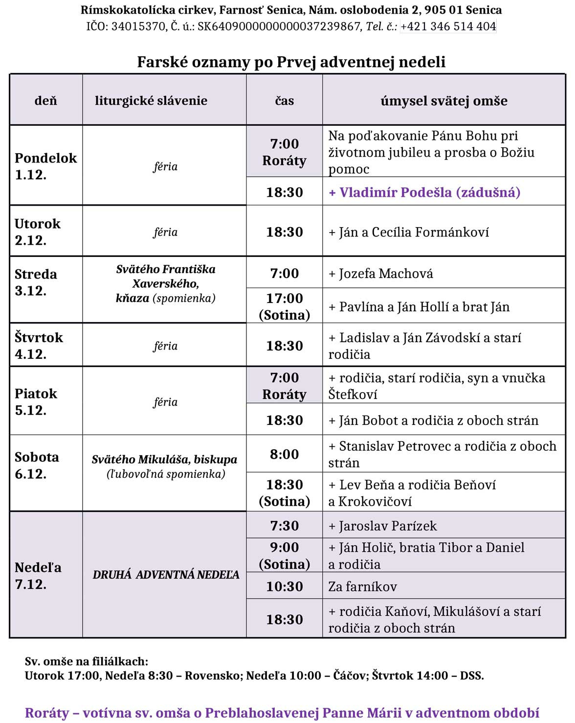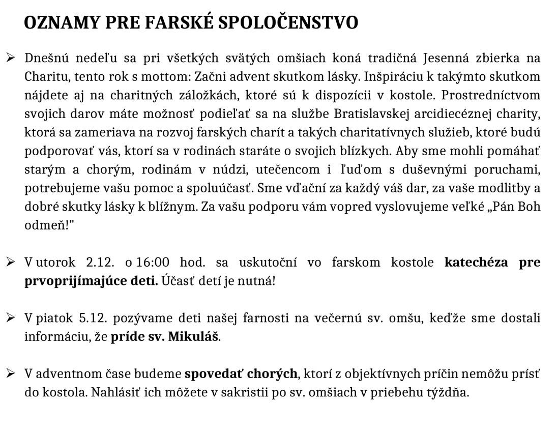 Farské oznamy 1. - 7. 12. 2025