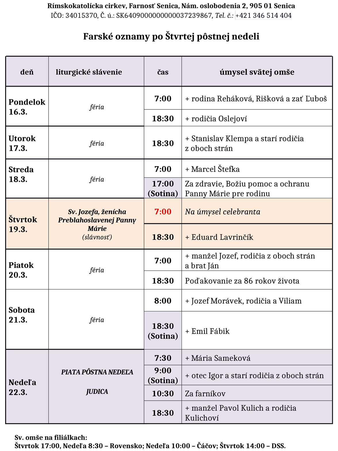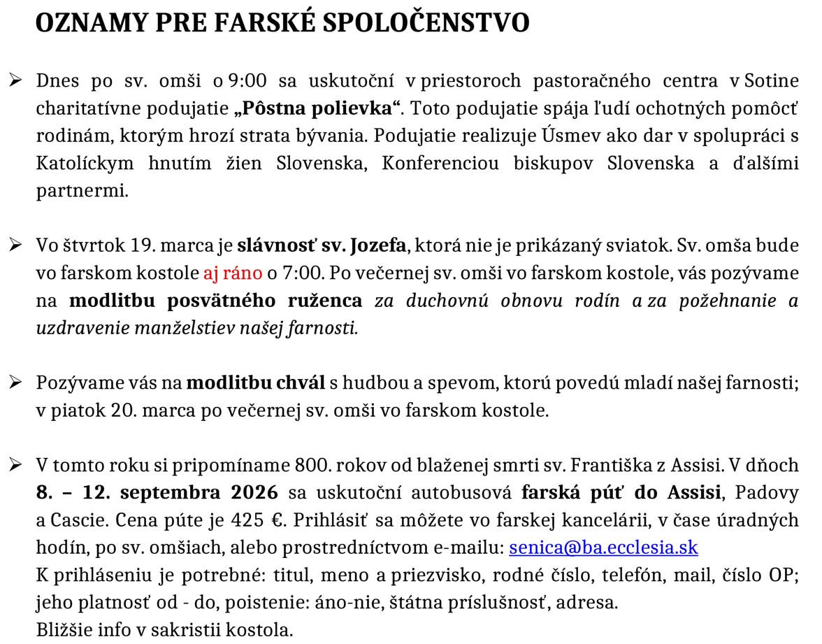 Farské oznamy 16. - 22. 3. 2026