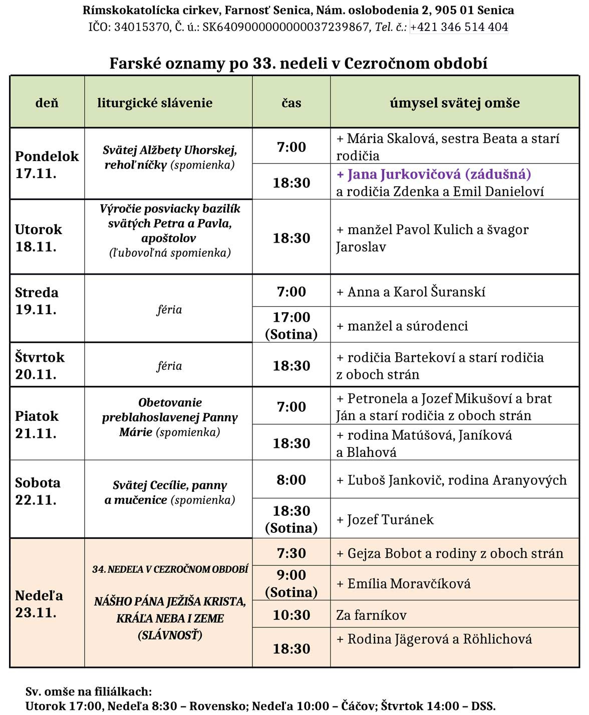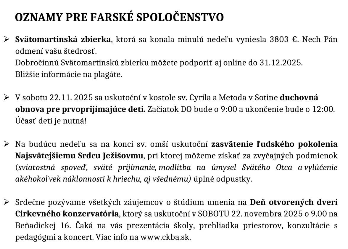 Farské oznamy 17. - 23. 11. 2025