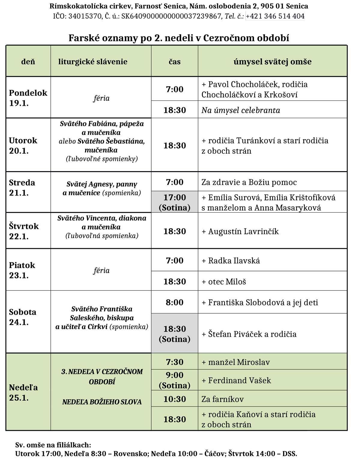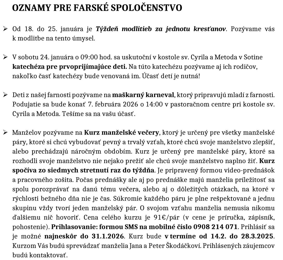 Farské oznamy 19. - 25. 1. 2026