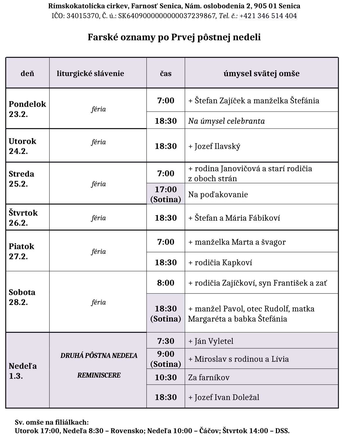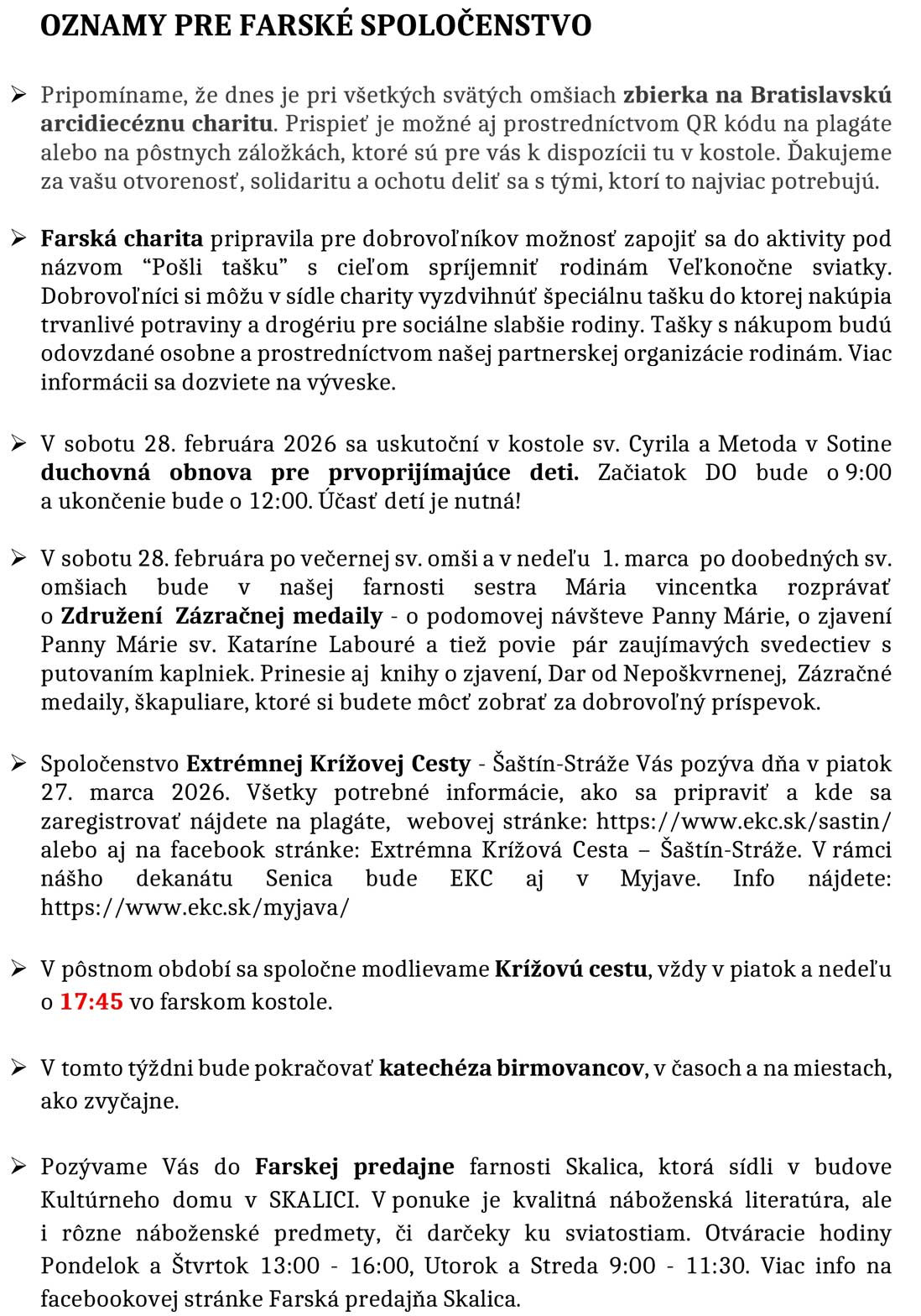 Farské oznamy 23. 2. - 1. 3. 2026